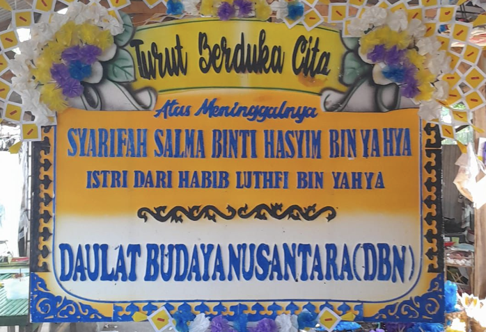 “Innalillahi wainna ilaihi rajiun, Syarifah Salma binti Hasyim bin Yahya istri dari Habib Muhammad Luthfi bin Yahya meninggal dunia pada Selasa kemarin…